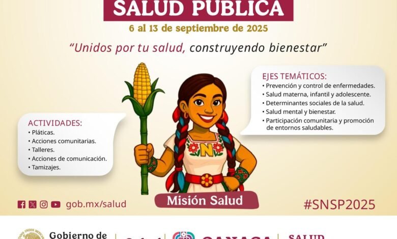 Oaxaca de Juárez, Oax., 29 de agosto de 2025.- Oaxaca se suma a la Semana Nacional de Salud Pública 2025, que se llevará a cabo del 6 al 13 de septiembre, enfocada en la prevención y atención temprana de enfermedades; informó Servicios de Salud de Oaxaca (SSO).
