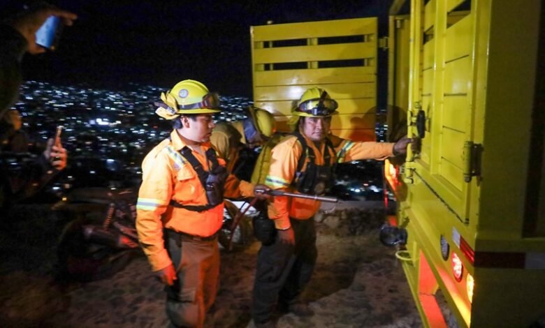 Oaxaca de Juárez, Oax. 13 de enero de 2026.– Personal del Heroico Cuerpo de Bomberos de Oaxaca, adscrito a la Estación Norte, sofocó el incendio de pastizal registrado en el Cerro del Crestón, a la altura de la cruz.