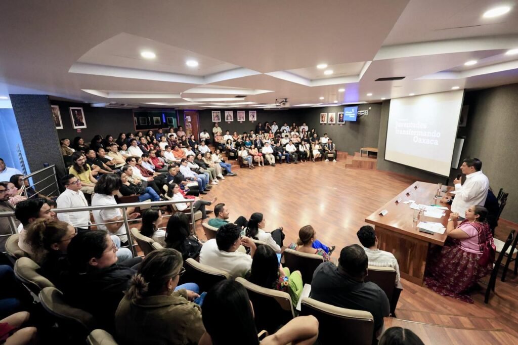 Oaxaca de Juárez, Oax. 29 de julio de 2025.- En un espacio de diálogo franco y abierto, el Gobernador Salomón Jara Cruz encabezó el Encuentro Juventudes Transformando Oaxaca, en el cual se abordaron los proyectos de este sector en cultura, deporte, el voluntariado; que propician un cambio social en la comunidad.