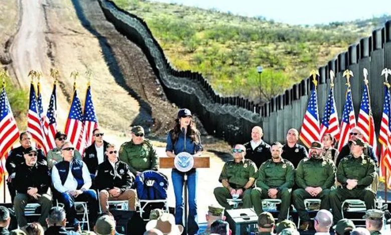 La secretaria de Seguridad Nacional, Kristi Noem, visitó ayer la frontera con México para promover los “logros” de su agencia, en medio de olas de críticas contra las políticas de Trump.