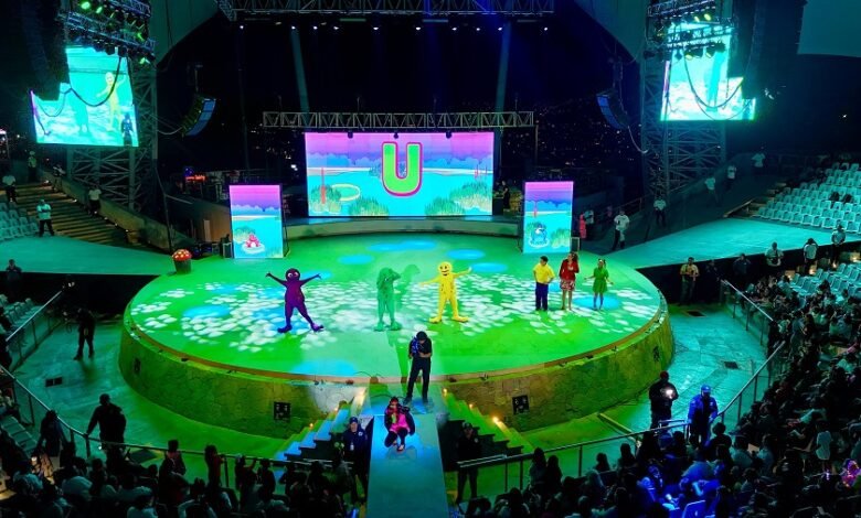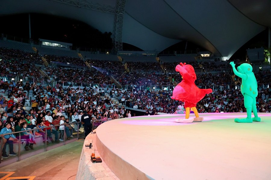 Oaxaca de Juárez, Oax. 18 de julio de 2025.- Con éxito se presentó en el Auditorio Guelaguetza el show musical de la “Gallina Pintadita” ante miles de niñas y niños, quienes junto a su madre, padre o familia, disfrutaron de sus canciones favoritas, siendo parte de Julio, mes de la Guelaguetza 2025.