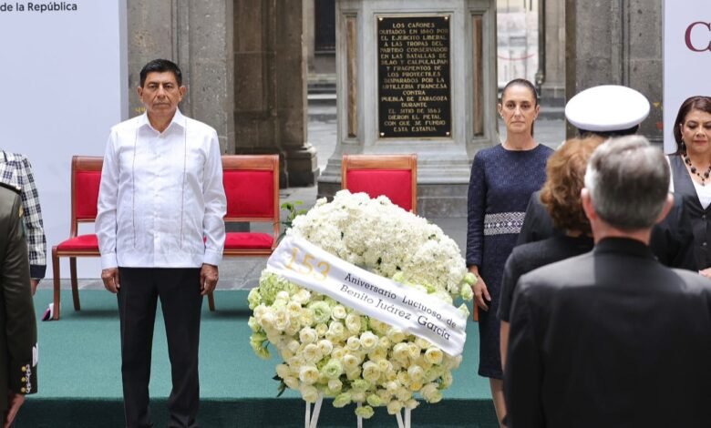 El Gobernador de Oaxaca y la Presidenta de México conmemoraron el 153 Aniversario Luctuoso de Benito Juárez en Palacio Nacional