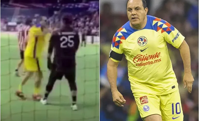 El exjugador del América, Cuauhtémoc Blanco, propinó un golpe al portero de Chivas, durante un partido de leyendas