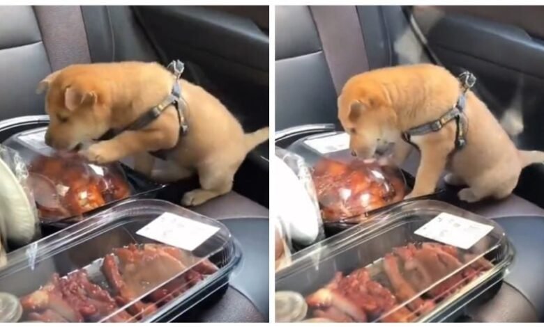 El cachorro lleva puesto un pequeño arnés que resalta aún más su apariencia tierna. Aunque parece mantenerse quieto durante el trayecto, la cámara logra captar un momento que rápidamente se volvió irresistible para quienes han visto el video: el perrito, creyendo quizá que nadie lo observa, comienza a lamer con insistencia la tapa de un contenedor de pollo rostizado.