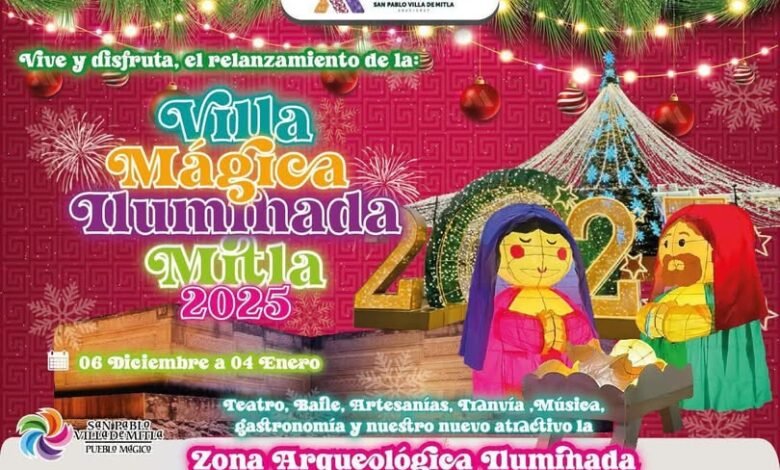 San Pablo Villa de Mitla se prepara para celebrar las fiestas decembrinas de 2025 con una nueva edición de la Villa Mágica Iluminada, que llenará de luz, color y alegría a este Pueblo Mágico de Oaxaca. Por lo que si aún no sabes qué hacer durante esta temporada, te recomendamos tomar nota de la información que a continuación te presentamos.
