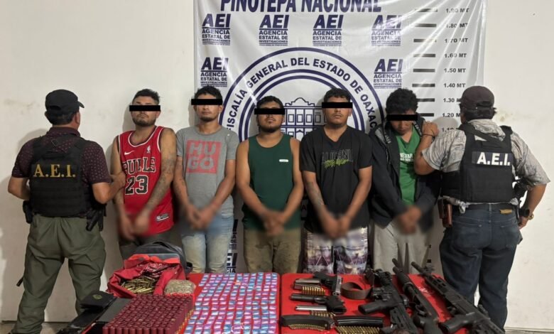Oaxaca de Juárez, Oax., a 02 de octubre de 2025.- Luego de desarticular una célula delictiva dedicada al narcomenudeo y vinculada con la comisión de secuestro, la Fiscalía General del Estado de Oaxaca (FGEO) obtuvo auto de vinculación a proceso contra cinco personas del sexo masculino por el delito contra la salud y asociación delictuosa, quienes operaban en la región de la Costa.
