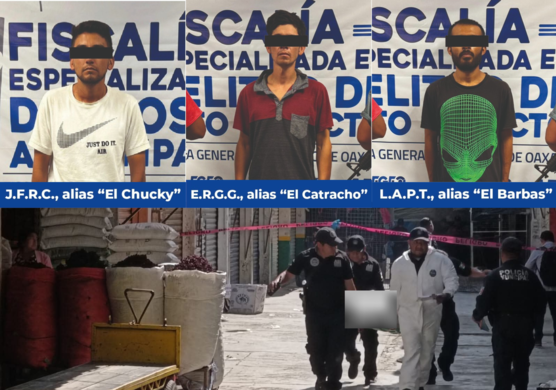 Oaxaca de Juárez, Oax. 17 de julio de 2025.- La Fiscalía General del Estado de Oaxaca (FGEO) obtuvo auto de vinculación a proceso en contra de tres personas del sexo masculino identificados como J.F.R.C., alias “El Chucky”; L.A.P.T., alias “El Barbas” y E.R.G.G., alias “El Catracho”, probables responsables del delito de homicidio calificado, cometido en inmediaciones de la Central de Abasto, en la ciudad de Oaxaca de Juárez.